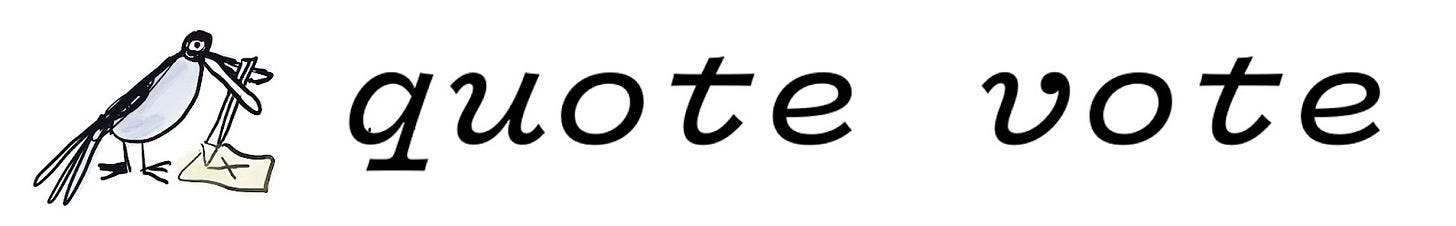 Get Wit Quick No. 361 never arrived at vuja de, the phenomenon of seeing something familiar as though it were new. The idea was coined by George Carlin, popularized by innovation scholars as a way to solve problems, and certainly never approved by the L’Académie française. This newsletter’s mascot is a magpie named Magnus after the magician in Robertson Davies’ Deptford Trilogy. The title font is Vulf Sans, the official typeface of the band Vulfpeck. The inferior-for-now AI replicant is at getwitquicker.replit.app. The book was Elements of Wit: Mastering The Art of Being Interesting. I feel like I’ve asked you to tap the ❤️ before? No?