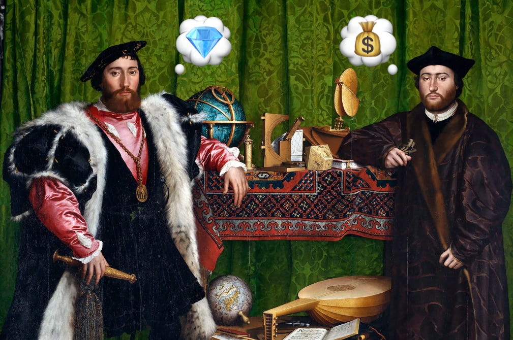 Get Wit Quick No. 354 was inspired by the legend of the Chinese mandarin who had himself woken up three times every morning simply for the pleasure of being told it was not yet time to get up. That line popped up in one of my quotation dictionaries credited to Argosy, though I don’t yet have the luxury of knowing who that is. This newsletter’s mascot is a magpie named Magnus after the magician in Robertson Davies’ Deptford Trilogy. The title font is Vulf Sans, the official typeface of the band Vulfpeck. The inferior-for-now AI replicant is at getwitquicker.replit.app. The book was Elements of Wit: Mastering The Art of Being Interesting. The ❤️ below is lined in premium Corinthian leather, imported just this morning from deepest Corinthia by Ricardo Montalbán himself. Tap it to feel how the other 1% lives!