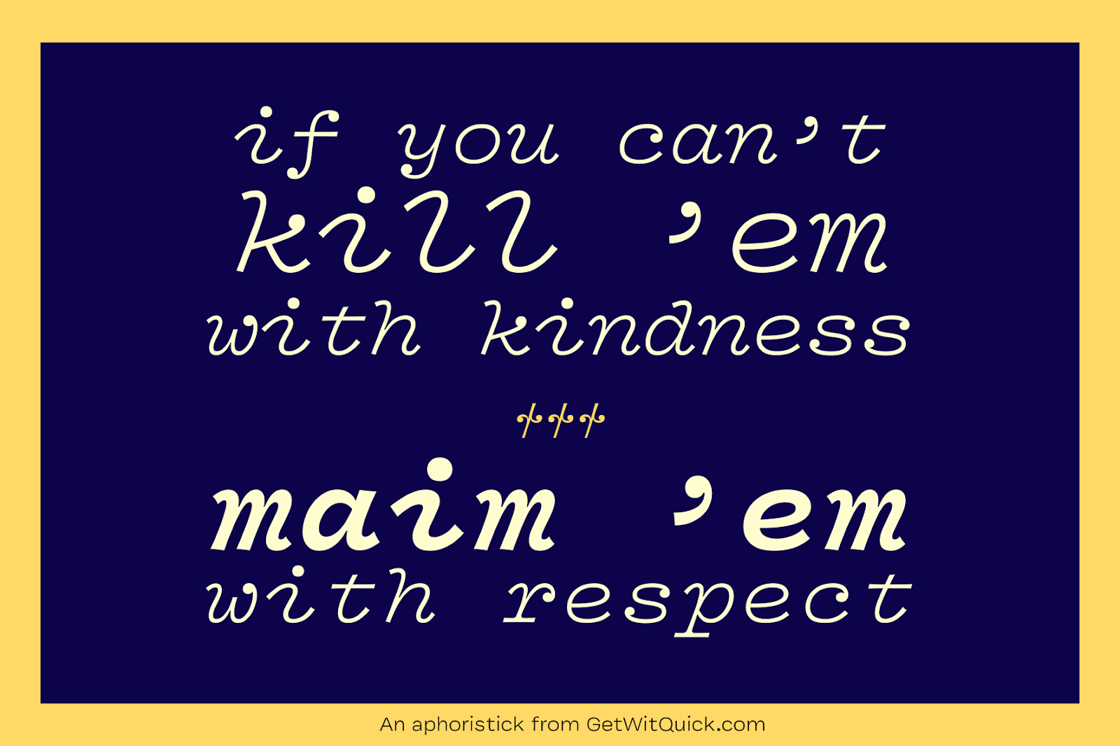 Just don’t forget that if you send me just a smidgen of money, I will send you Riposte Cards, the glorious collection of 28 bespoke works of art commissioned over two years, and now Aphoristicks, a monthly snicker of a sticker going out to those of you kind enough to cover the postage. And now the mail is working again!