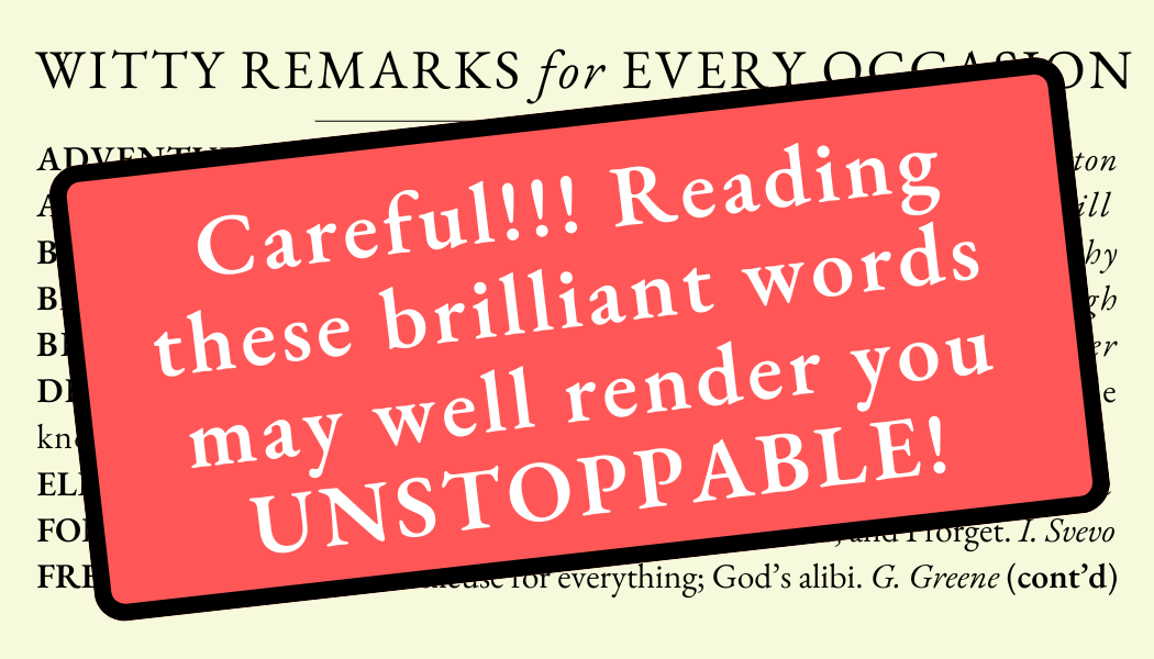 Issue No. 334 of Get Wit Quick always remembers to put i before e except after c and the other 35% of the time when that rule is just plain wrong. This newsletter’s mascot is a magpie named Magnus after the magician in Robertson Davies’ Deptford Trilogy. The title font is Vulf Sans, the official typeface of the band Vulfpeck. The book was Elements of Wit: Mastering The Art of Being Interesting. At the end of this newsletter I always ask you to tap the ❤️ from the bottom of my heart.